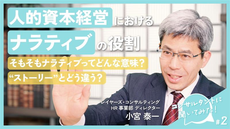 今回は「ナラティブ」をテーマに、人的資本経営におけるナラティブの役割や、ストーリーとの違いなどを、人的資本経営のコンサルティングにおいて多数の支援実績を持つディレクターの小宮 泰一よりご紹介します。