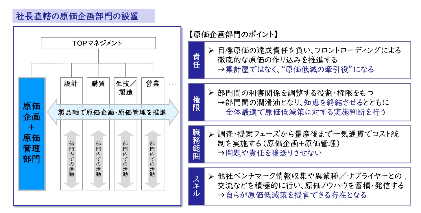 【原価企画改革② 組織】社長直轄の原価企画部門の設置
