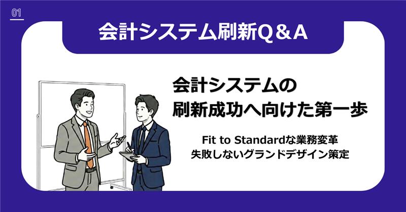 初回は「会計システム刷新Q&A」というテーマで、会計システム刷新におけるポイントについてわかりやすく解説しています。第1回は「会計システムの刷新成功へ向けた第一歩」として、、村井先生と原田君のやり取りを読んでいるだけで、会計システム刷新のよくある「見落としがちな落とし穴」について理解できる内容となっています。ぜひご一読ください。