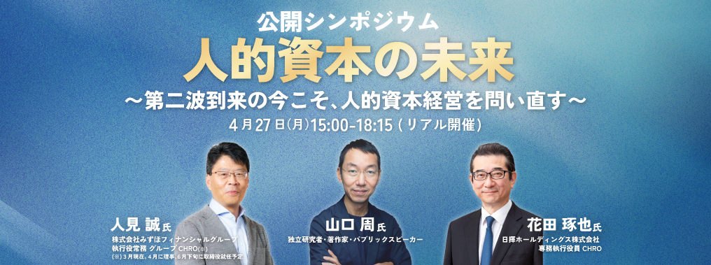 【プレスリリース】山口周氏、日揮HLD・みずほFGのCHROが語る公開シンポジウム 『人的資本の未来 ~第二波到来の今こそ、人的資本経営を問い直す~』<2026年4月27日(月) リアル開催>