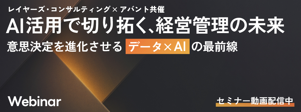・2026年2月3日開催セミナー「AI活用で切り拓く、経営管理の未来~意思決定を進化させるデータ×AIの最前線~(株式会社レイヤーズ・コンサルティング、株式会社アバント共催)」のアーカイブ配信です。