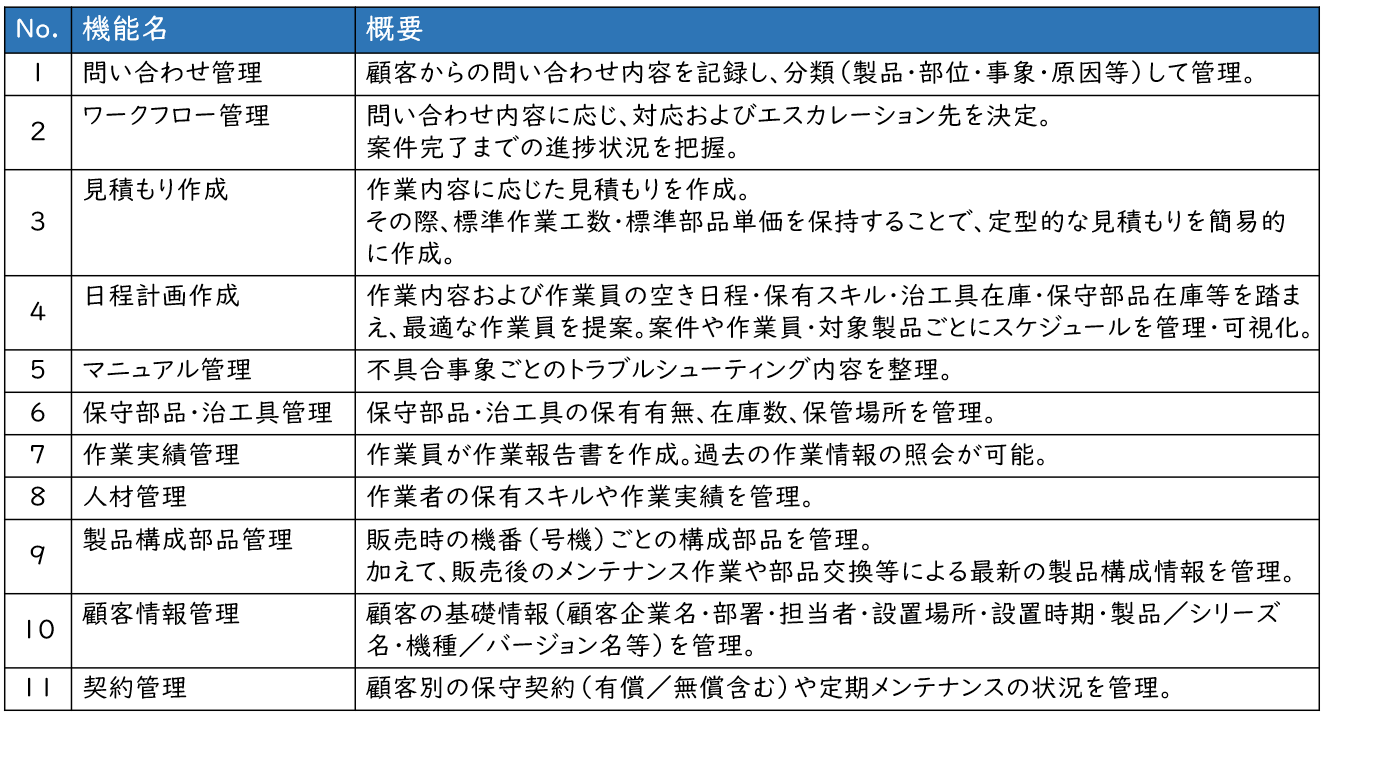 「アフターサービス業務基幹システム」としては、下記業務機能を満たしている必要があります。