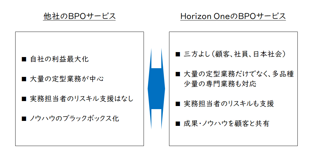 Horizon Oneは日本企業の構造改革を支援するBPOサービスを提供しております。