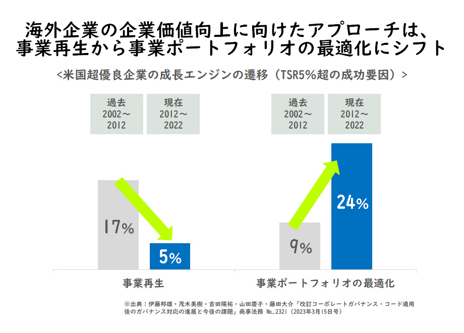 では、PBR1倍割れが多い日本では、「事業ポートフォリオの見直し」は進んでいるのでしょうか。