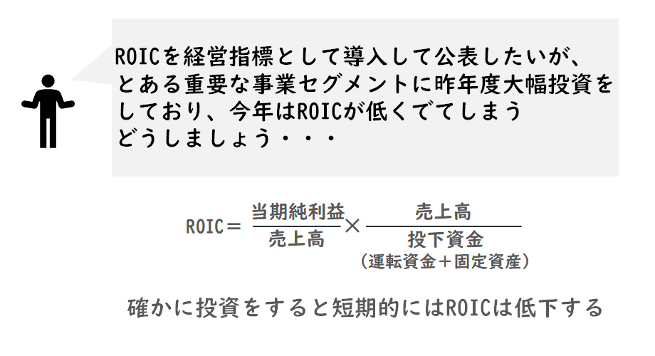あらためてROICは何のための指標なのでしょうか。多くの企業がROIC経営を掲げる中で、目先のROICを追い求める傾向にあります。この場合、ROICの一時的な低下だけで手詰まりになってしまいます。