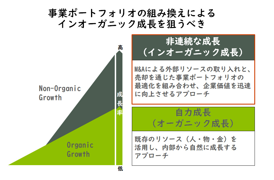 事業ポートフォリオの組み換えによるインオーガニック成長がカギ
