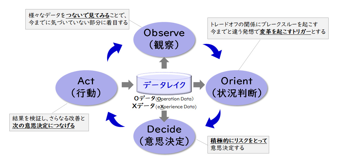 VUCAにおける意思決定の成否はスピードの早さが決め手になります。データ示唆に基づくアクションに、何らかの効果が期待されるならば、OODA的思考を取り入れ、「まずやってみる」ことを重要視し、失敗を恐れずトライさせていくことを経営層が推進していくべきだと考えます。