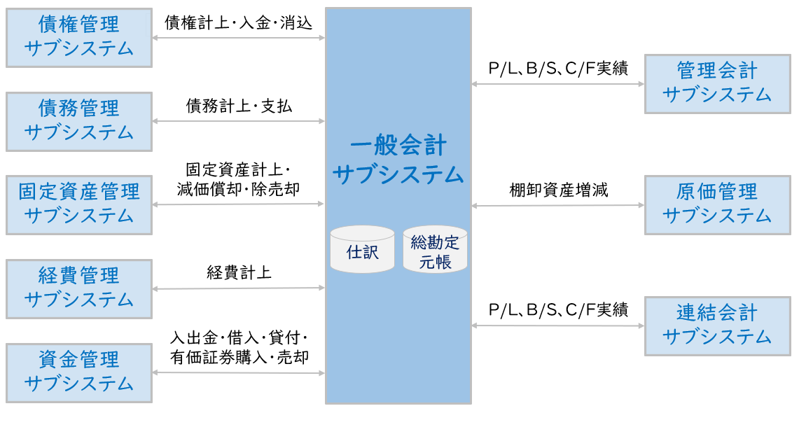 会計システムは、複数のサブシステム(モジュール)で構成され、各々が特定の財務機能を担当します。これらは相互連携し、データの一元化を実現します。