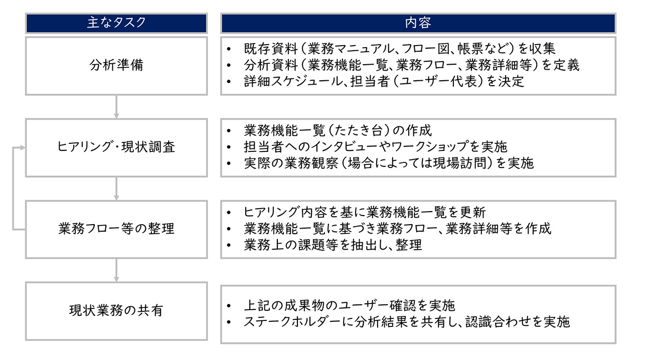 その中で今回は、業務要件定義フェーズの前編として、現状詳細分析を中心に説明します。