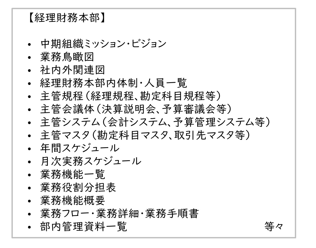一般的に、プロジェクトの成果物は、会計システム導入に係わるプロジェクトメンバーだけが利用することが少なくありません。しかし、会計システム導入だけを目的として、多大な工数をかけたアウトプットを他で活用しないのは、もったいないのではないでしょうか。また、会計システム導入の範囲だけに限定して成果物をつくるだけでは、経理財務業務の全体像把握には不十分です。