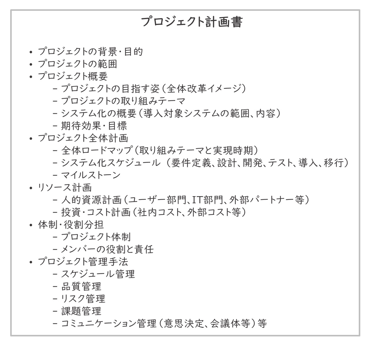 【図10】プロジェクト計画の目次例