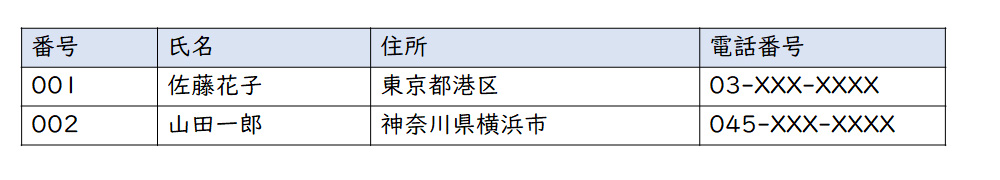 例えば、皆さんも住所録として下記のようなExcelの表を作ったことがあるのではないでしょうか。