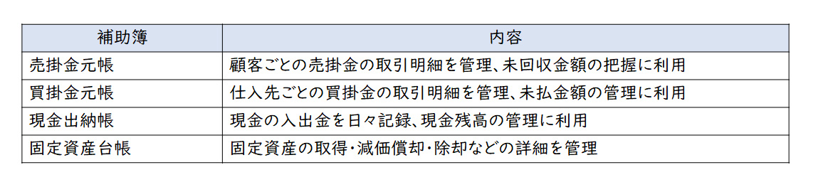 簿記では、仕訳帳と総勘定元帳のほかに個々の勘定科目を管理するための補助簿があります。