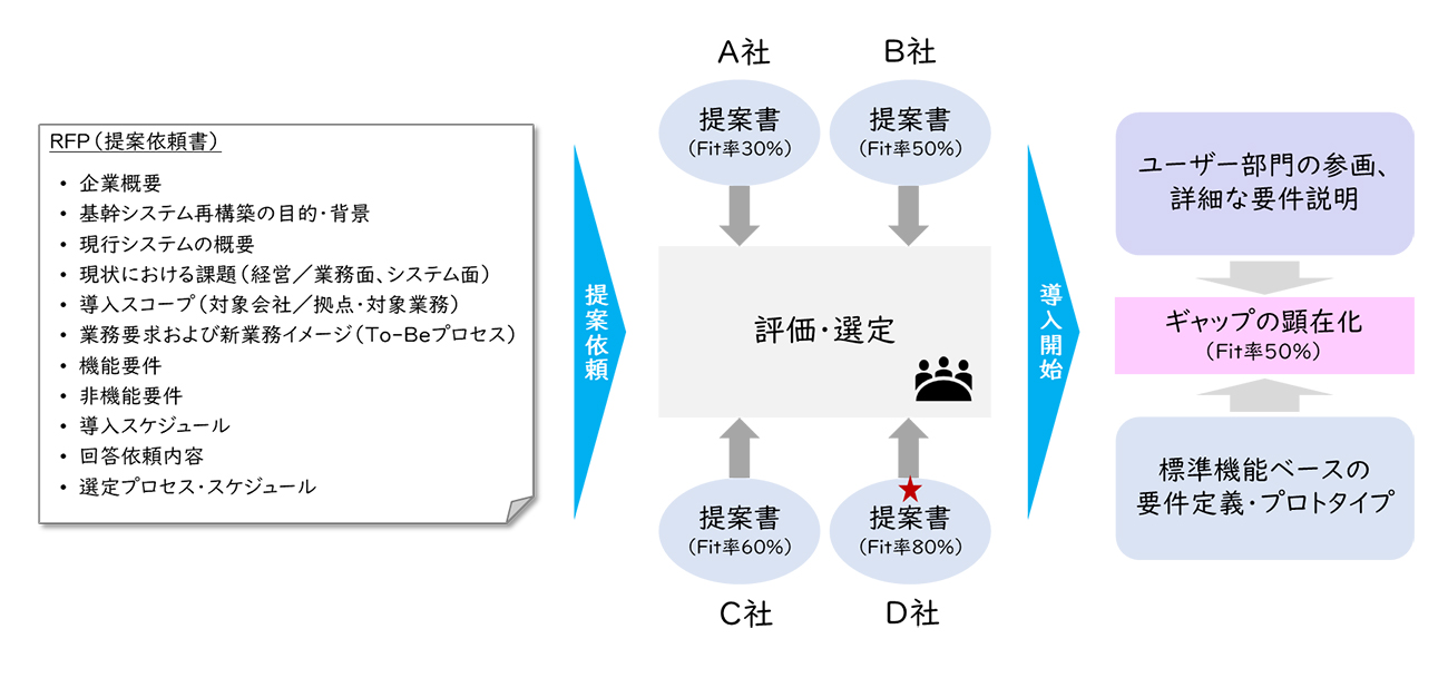 - RFPは提案品質の均一化・客観評価に有効だが、工数が膨大で、選定後のシステム要件定義で想定外のギャップが多発し得る。