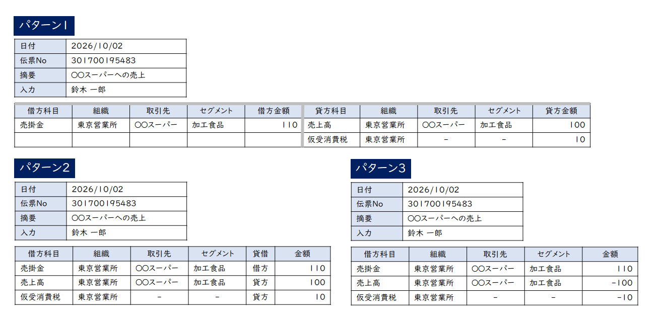 - 入力フィールドは同じで借方と貸方の区分を入力