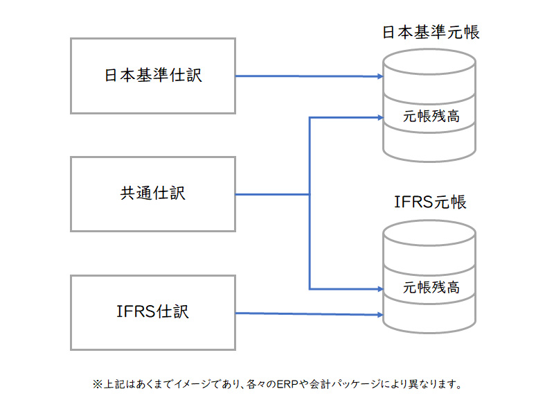 IFRSを採用している場合、日本基準での会計処理とIFRSでの会計処理をそれぞれ行う必要がある場合が発生します。この場合、日本基準の仕訳とIFRSの仕訳を入力でき、それぞれ日本基準の残高とIFRSの残高を別に計算できる複数元帳機能を持つERPや会計パッケージもあります。
