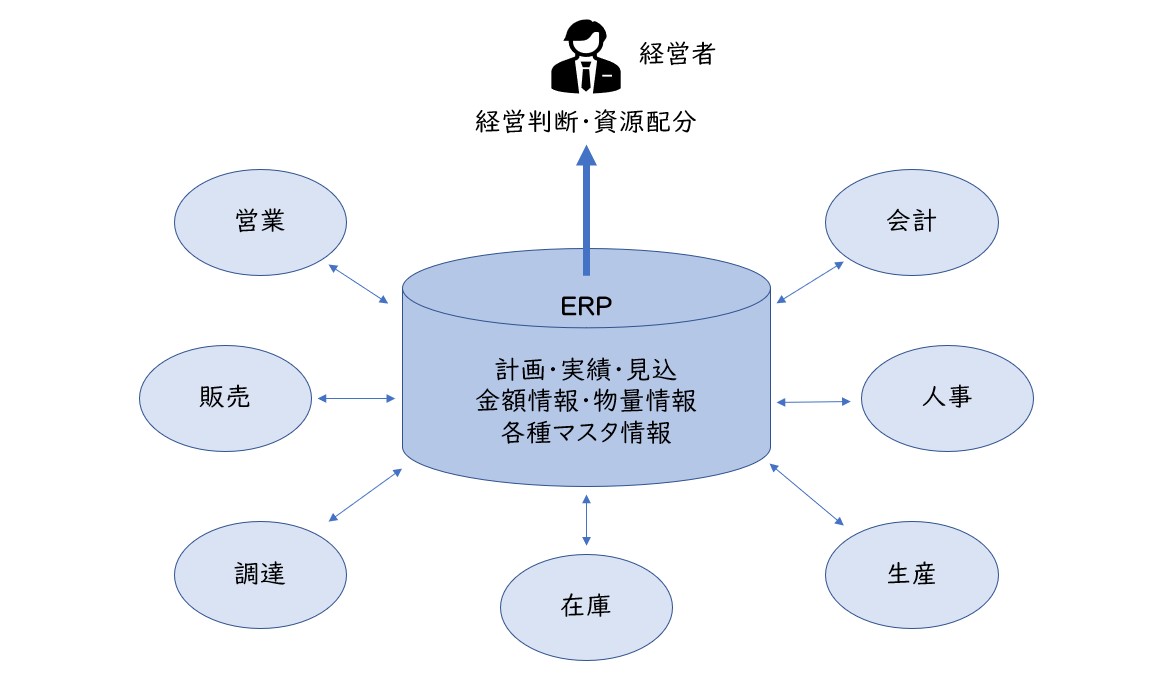 ERPは現場が利用する業務システムつまり「オペレーションシステム」である一方、入力データは経営判断のための元情報となるため「意思決定システム」という性格も持ちます。システム導入の目的として、オペレーションシステムとしてはいかに生産性向上のために業務をシステム化できるか・生産性向上に寄与できるかが問われ、意思決定システムとしては経営判断のためにどのようにデータ活用できるのかが重要になってきます。