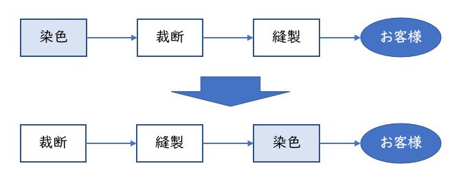受注→製造→納品のリードタイムを短縮するために、前述の遅延差別化戦略が有効です。お客様仕様の違いが余りないところまでは予め生産し、最終的な顧客仕様の部分だけ製造し、リードタイムを短縮するといった方法です。