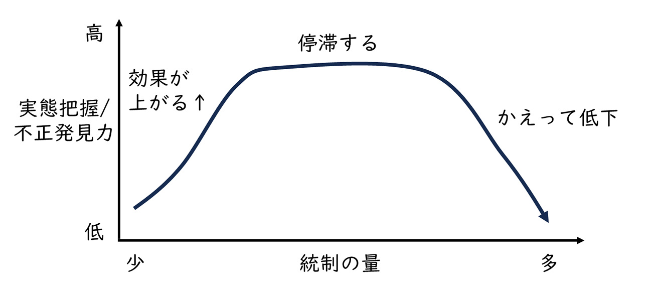 さらに、統制が増えるほど現場が「指摘されないこと」に意識を向け、本質的なリスク議論が後回しになるという逆説も生まれます。結果として、「ルールは守っているが実態は見えていない」状態に陥ります。不正防止を本気で考えるなら、統制の量を増やす発想から一歩進み、意思決定の透明性や、率直な対話が可能な環境をどう設計するかという視点が不可欠になります。