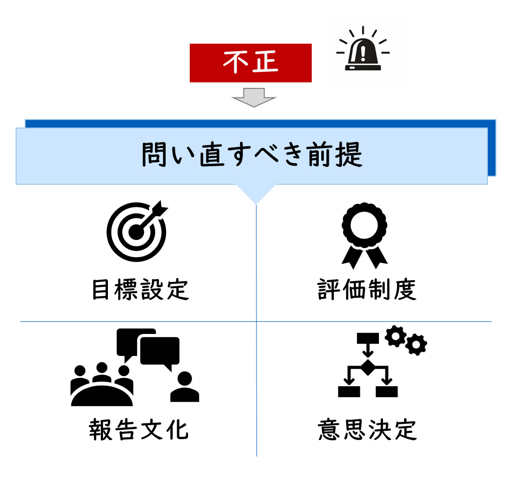 不正会計が発覚した際、多くの企業はまず個人責任の追及や規程の強化に目を向けます。しかし本質的には、不正は偶発的な事故ではなく、経営そのものに対する重要な警告です。目標設定が現実とかけ離れていなかったか、評価制度が短期成果に偏っていなかったか、未達やリスクを率直に共有できる報告文化が機能していたか、意思決定のプロセスに過度な同調圧力がなかったか。こうした経営の前提条件を問い直す契機と捉えるべきです。