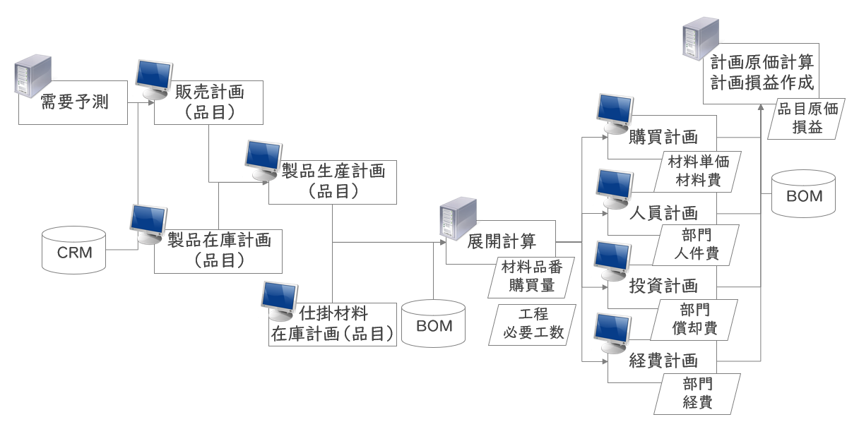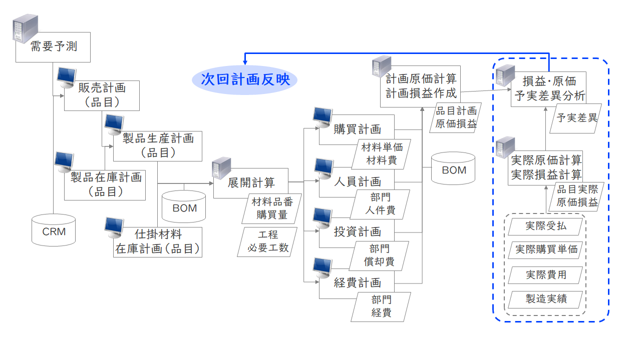 理想的な経営管理基盤とは、いわば企業の「神経系統」です。ある営業部門が販売計画の数量を変更した瞬間、その情報が即座に生産計画、購買計画、人員計画に伝達され、最終的に全社の計画損益インパクトとして経営層のダッシュボードに反映されます。このような「一気通貫」のデータ連動モデルこそが、CPM(Corporate Performance Management)システムが目指す姿です。需要予測という「源流」から、BOM(部品表)展開による生産・購買計画、そして計画原価計算を経て、計画損益という「河口」まで――この水の流れを淀みなくつなぐことで、部門間のサイロを破壊し、全社最適の意思決定を迅速に行うことが可能になります。