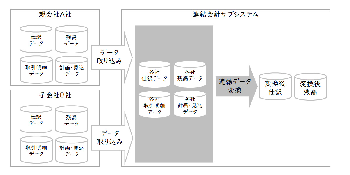 ただし、明細データ蓄積は、保持できるデータ量、保持しているシステム環境、データ変換方法等が連結会計サブシステムで異なるため、導入時にどのようなことがどこまでできるか確認が必要です。