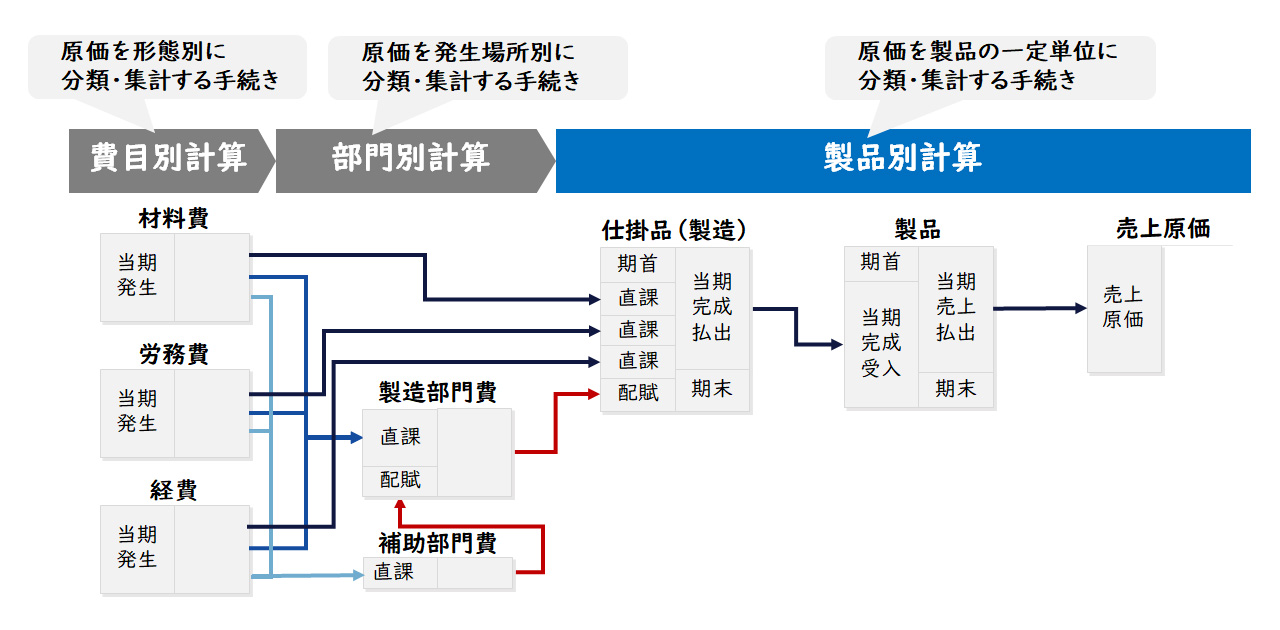 原価の製品別計算とは、原価要素を一定の製品単位に集計し、単位製品の製造原価を算定する手続きです。部門別計算に次ぐ原価計算における第三次の計算段階です。