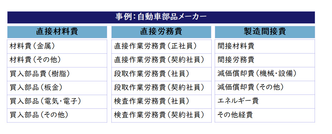 費目別計算においては、形態別分類(材料費、労務費、経費)を基本に、直接費と間接費、変動費と固定費、管理可能費と管理不能費、さらに機能別分類など、必要に応じて細分化して計算します。こうして細分化した費目は、原価費目マスタに登録する必要があります。原価費目の種類や設定数については、原価管理サブシステムごとに異なるため、導入時に確認が必要です。