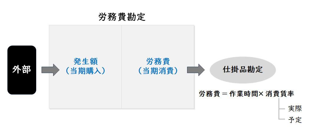 労務費は、原則として時間記録によって実際作業時間を計算し、これに消費賃率(チャージレート)を掛けて計算します。