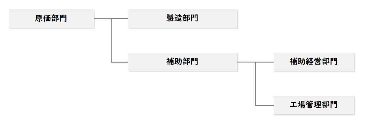 原価部門は、下記のように「製造部門」と「補助部門」とに分けます。