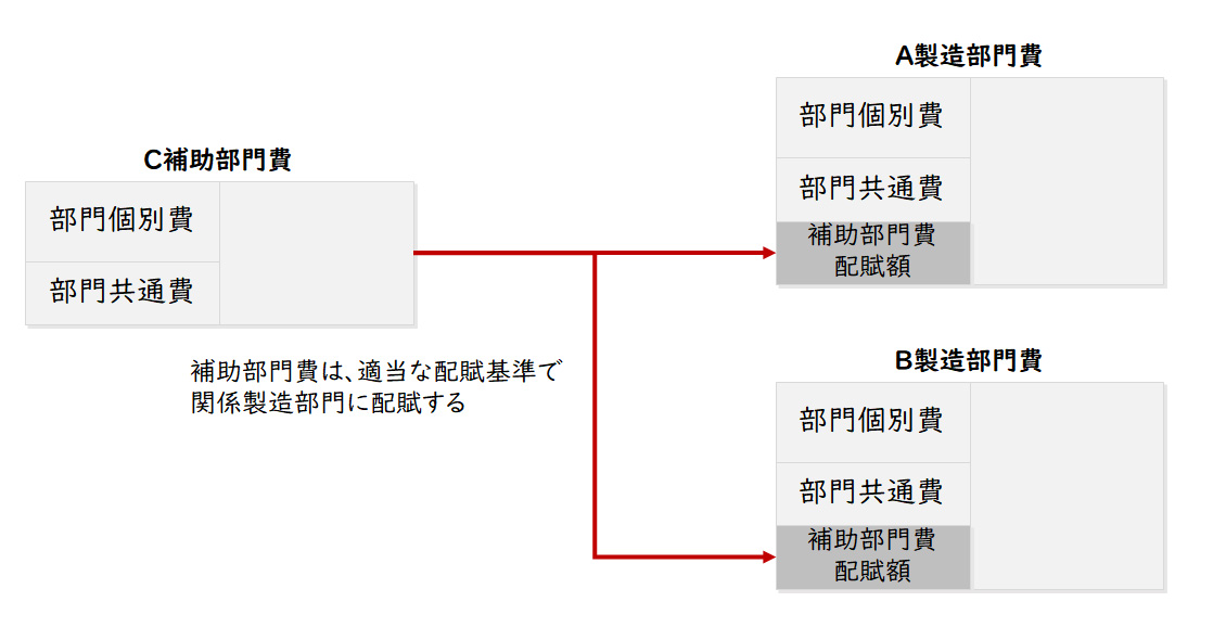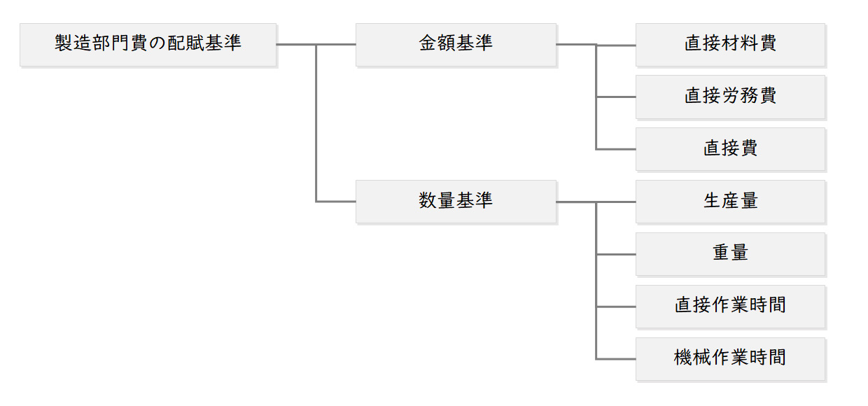 補助部門費は、直接配賦法、階梯式配賦法、相互配賦法等にしたがい、適当な配賦基準によって各製造部門に配賦し、製造部門費を計算します。この計算手続きを「部門費の二次集計」といいます。