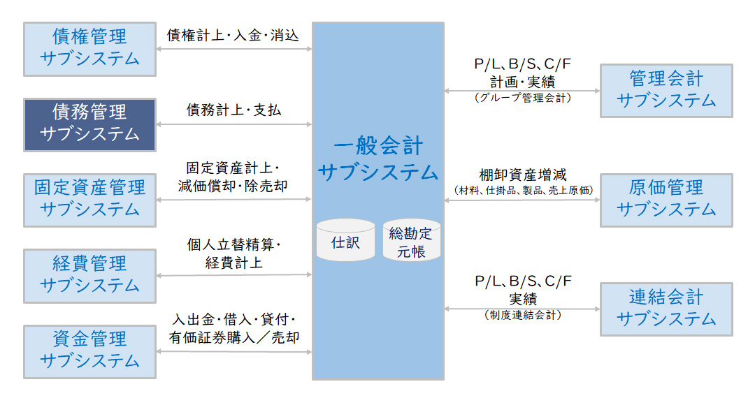 債務管理サブシステムは、通常一般会計サブシステムと同じ会計システムを導入することが一般的です。