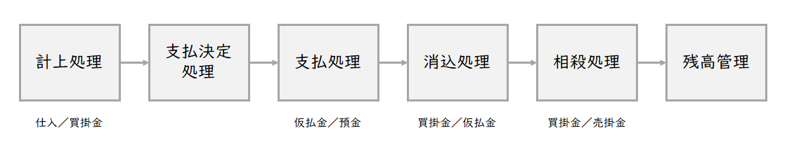 ここでは、支払処理で下記の仕訳を行うことを前提としています。
