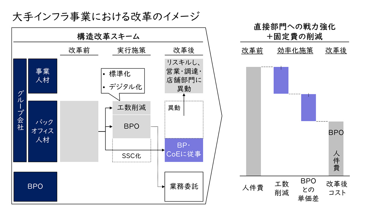 OPEを少数精鋭化するには、SSC(集約)とBPOをどう組み合わせるかが核心となります。