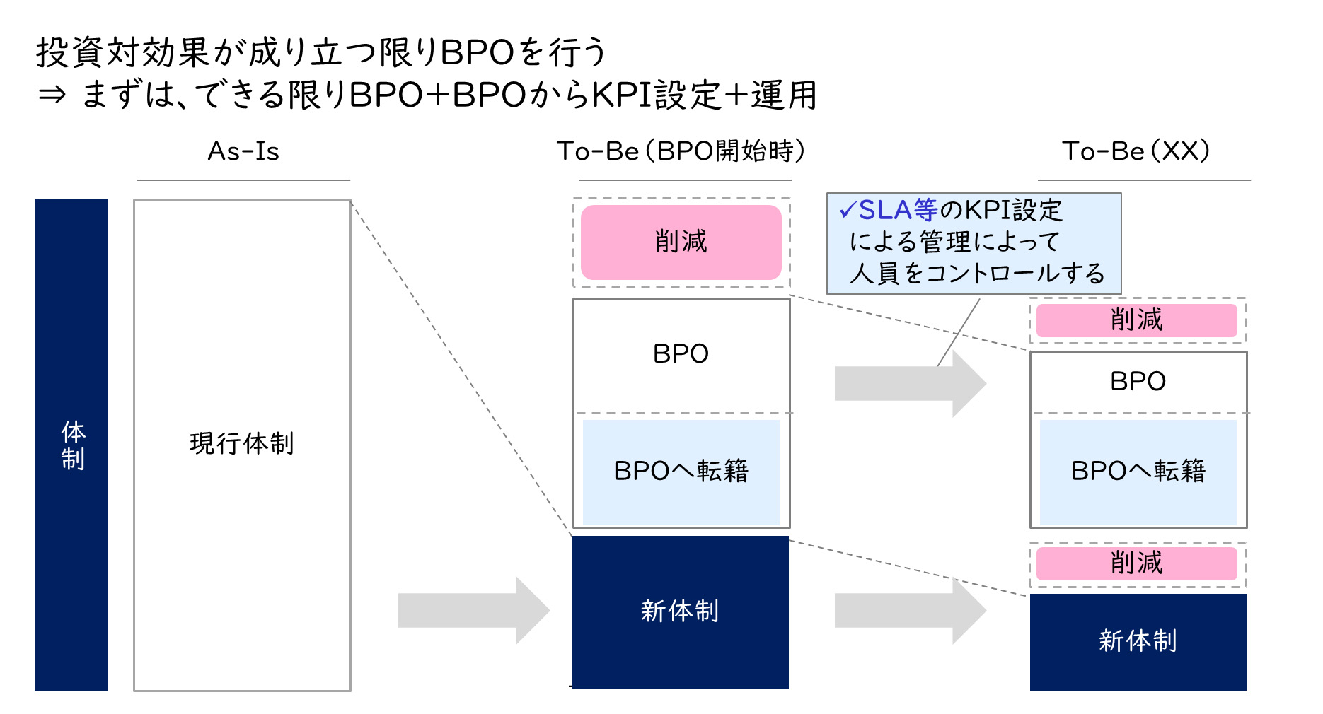 【図5】BPO前提でKPI(SLA等)により人員・品質をコントロールする考え方