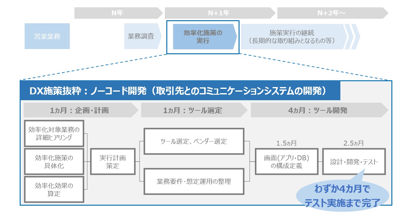 【図4】大手産業機器メーカーでのノーコード活用事例の実施スケジュールの例