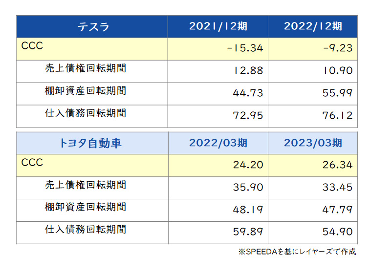 例えばテスラは、数年前に実店舗からオンライン販売に移行して受注生産型のビジネスモデルを再構築しました。受注生産型となることで在庫を削減し、クレジットカード決済等によって売上債権の回収期間を短縮したことに加え、部品削減・共通化や組み立ての効率化といった合理化により棚卸資産の効率性を高めた結果、2021年~2022年はCCCマイナスを実現しました。こういったビジネスモデルやバリューチェーンの再構築と、スタンダードなCCC改善活動の組み合わせでROIC向上に大きな貢献ができます。