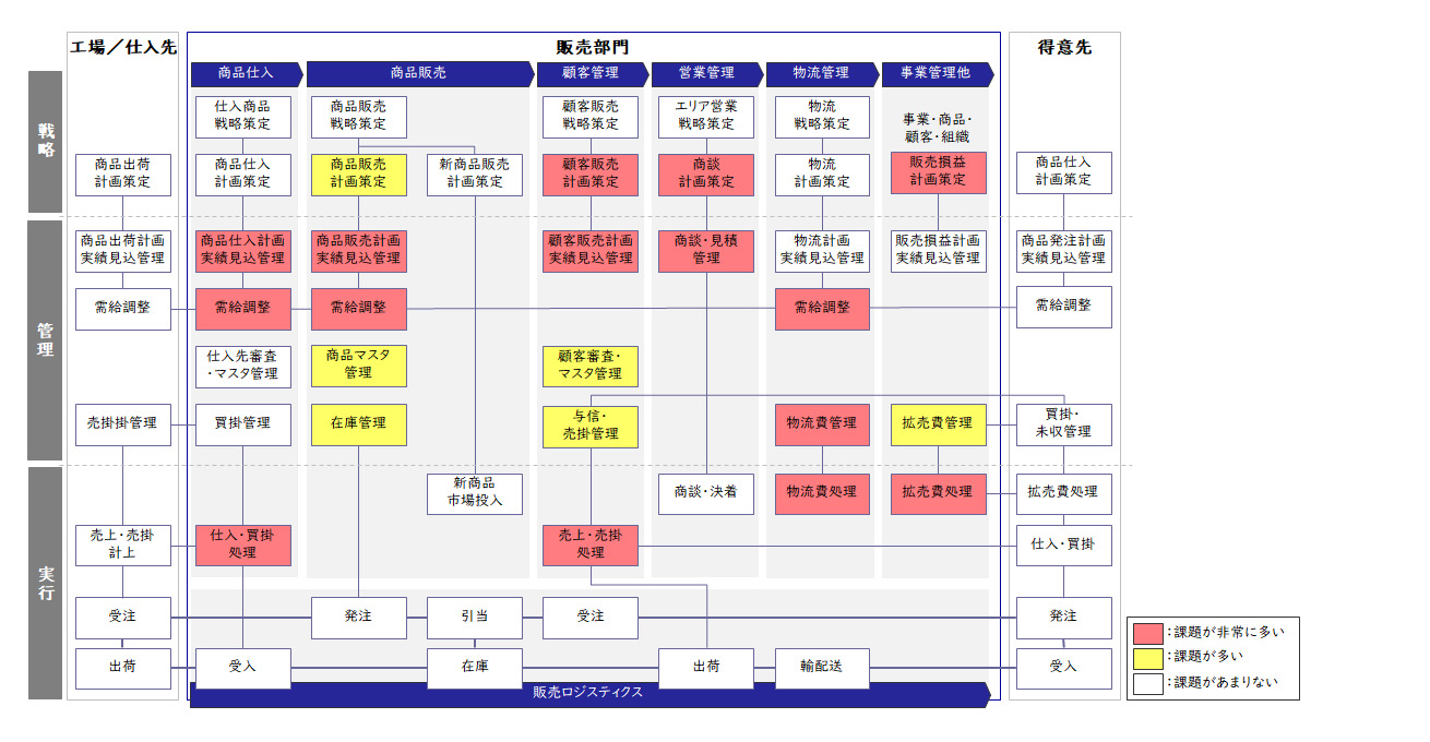 さらに、業務鳥観図に課題をマッピングし、全体感をもって課題を整理することが重要です。