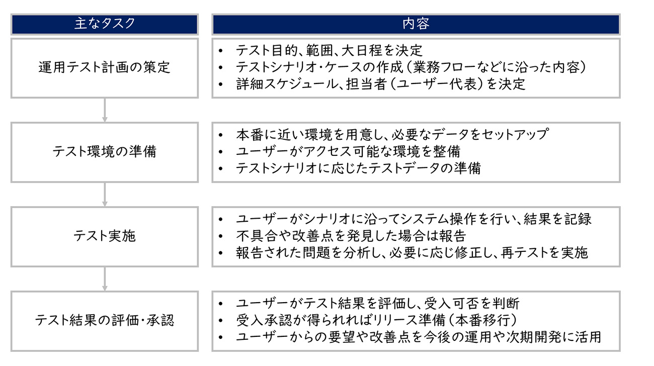 運用テストは、導入予定のシステムがユーザーの業務要件や期待に合致しているかを確認する最終段階のテストです。